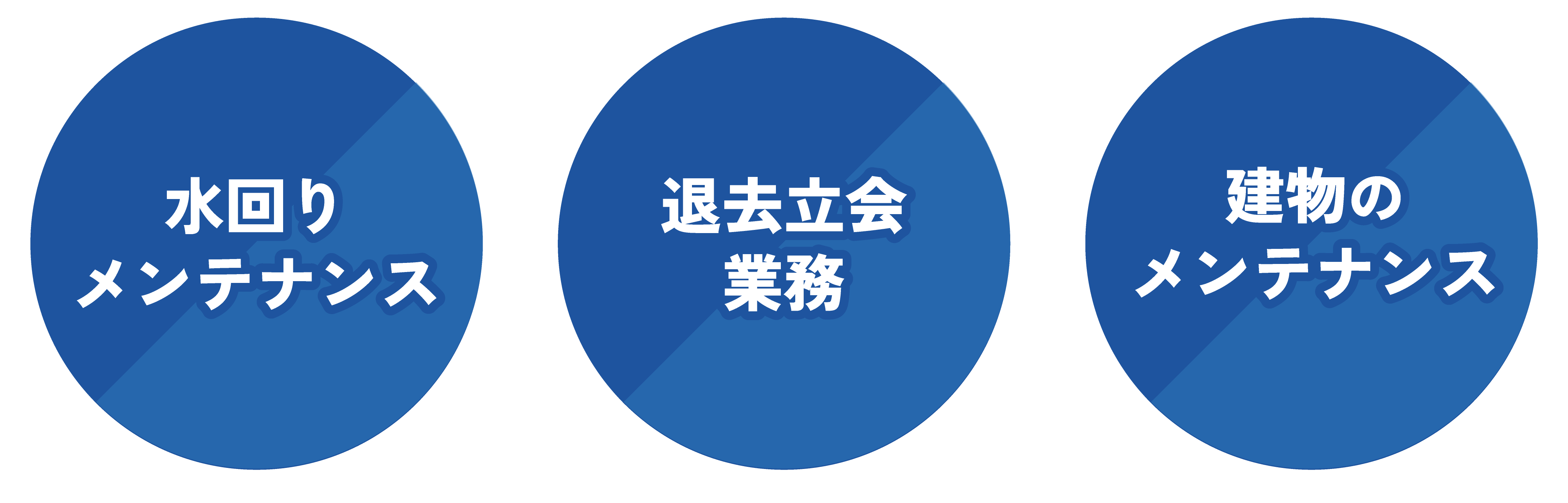 退去立会や原状回復工事、建物メンテナンスなど、依頼が安定しています。